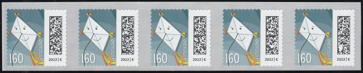 3654 Briefdrachen 160 Cent sk 500er, 5er-Streifen GERADE Nummer **