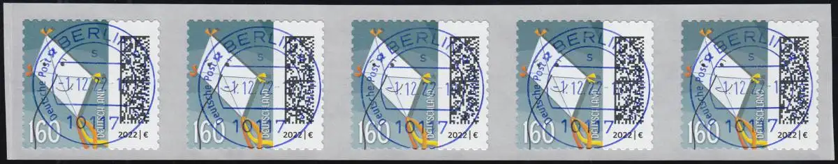 3654 Briefdrachen 160 Cent sk 500er, 5er-Streifen UNGERADE Nr. EV-O VS Berlin