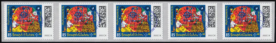 3669 Rumpelstilzchen, selbstklebend, 5er-Streifen mit GERADER Nummer EV-O Bonn