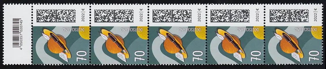 3670 Brief auf Umlaufbahn 70 C. aus 200er, 5er-Streifen mit Codierfeld **