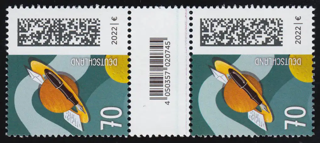 3670 Brief auf Umlaufbahn 70 C. aus 200er, Paar - Codierfeld mit roter Linie **