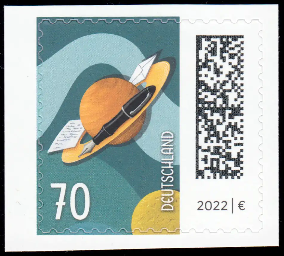 Welt der Briefe, Füller und Briefe im Orbit eines Planeten, Druck GDL (Leipzig)