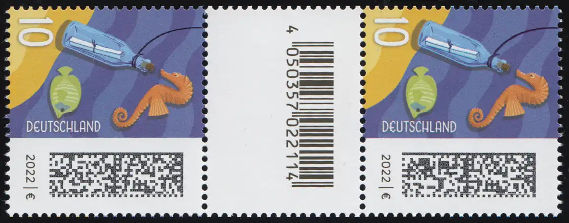 3723AII Flaschenpost 10 Cent aus 200er, Paar mit Nr. - großem CF - ohne Nr. **