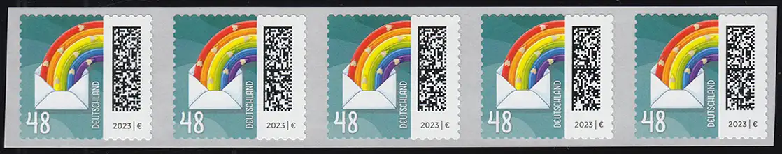 3743 Regenbogenbrief 48 Cent sk aus 500er, 5er-Streifen GERADE Nummer **