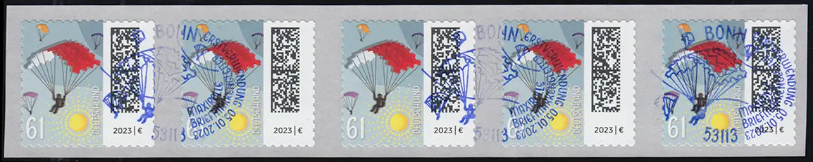Serie: Welt der Briefe / Thema: Briefmarken, die als Gleitschirme verwendet werden, selbstklebend aus der 500er-Rolle