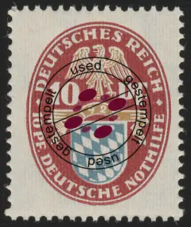 376 Nothilfe Wappen Bayern 10+10 Pf O