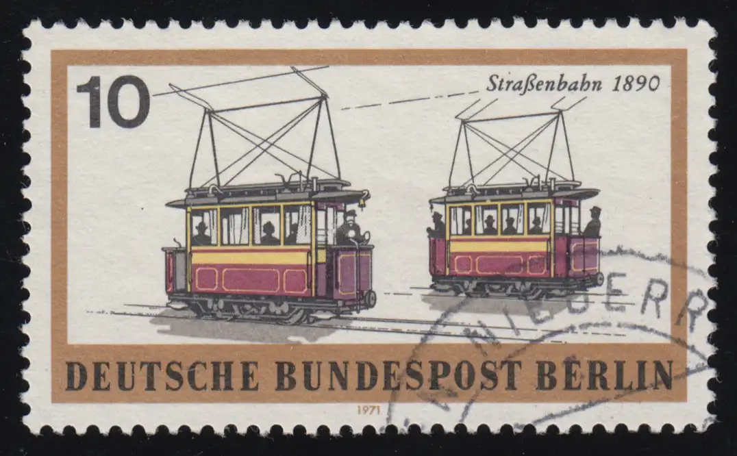 380I Straßenbahn mit PLF I: Linienbruch über Mann mit Hut, gestempelt O