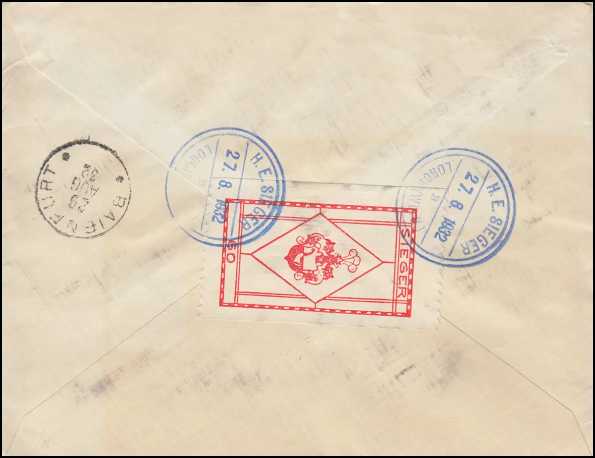 mit Briefstempel und Siegelmarke der Firma Hermann E. Sieger / Briefmarkenhandel, Umschlag leicht bügig