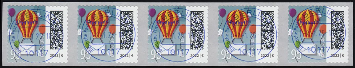 3873 Ballonpost 95 Cent sk 100er BDB 5er-Streifen UNGERADE Nummer EV-O VS Berlin