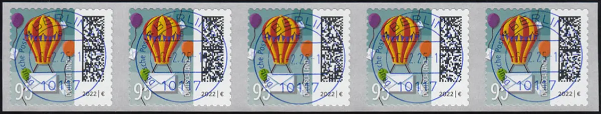 3873 Ballonpost 95 Cent sk 500er BDB 5er-Streifen UNGERADE Nummer EV-O VS Berlin