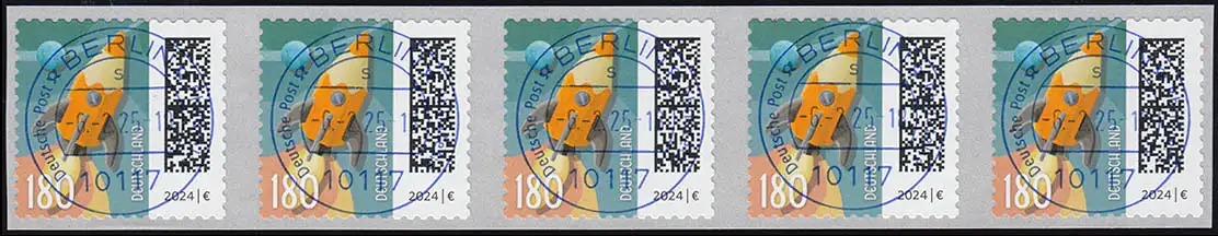 3874 Raketenpost 180 Cent sk 5000er, 5er-Streifen GERADE Nummer EV-O VS Berlin