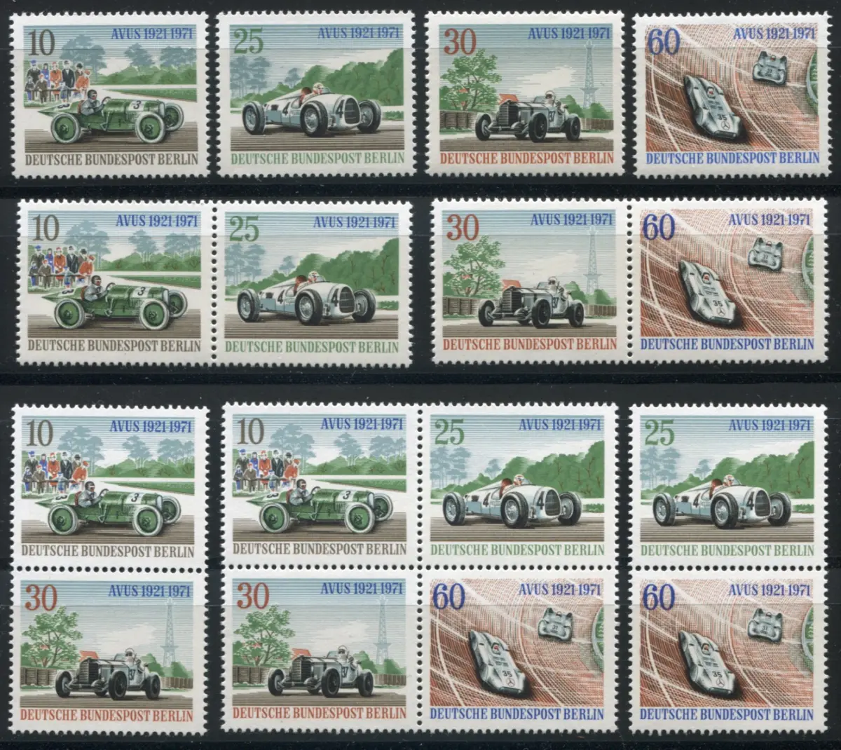397-400 AVUS-Rennen 1971 aus Block 3 mit 5 ZD und 4 Einzelmarken, Set **