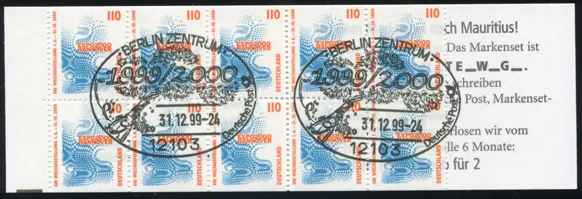 Type I: Schnittmarkierung am Heftchenblattrand schwarz, mit Sonderstempel BERLIN-ZENTRUM Millennium - Sekt und Feuerwerk - 31.12..1999