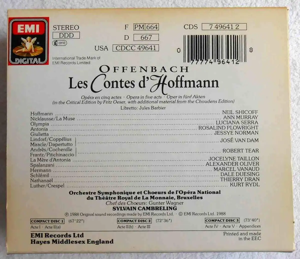 Original CD Box , EMI Records, feat Neil Shicoff, Ann Murray, Jessye Norman, Sylvain Cembreling usw...
