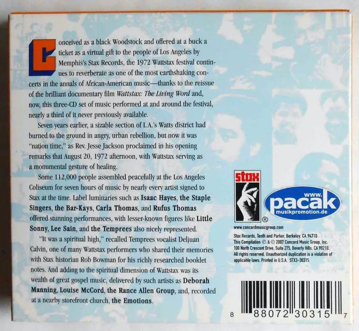 3CD Set Wattstax (Stax) 2007 - Music from the Festival & Film - 1972
