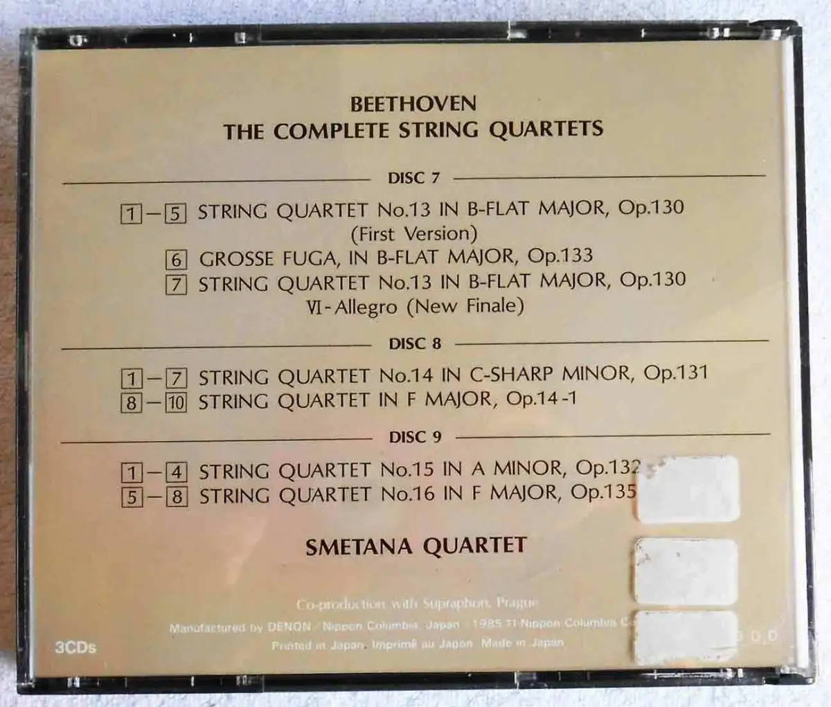 3CD Smetana Quartet: Beethoven String Quartets No. 13/14/15/16 (Denon PCM)