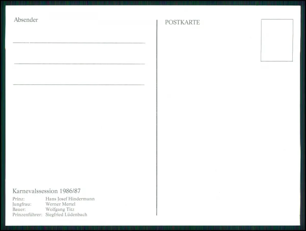 Bergheim bei Köln gehört zur Karnevalshochburg Nordrhein-Westfalen. Das Dreigestirn aus Prinz, Bauer und Jungfrau ist eine uralte karnevalistische Tradition im Rheinland. Die Karte stammt aus der Zeit des traditionellen Sessionsbeginns 11.11. und dokumentiert das lokale Brauchtum in prachtvoller Darstellung.