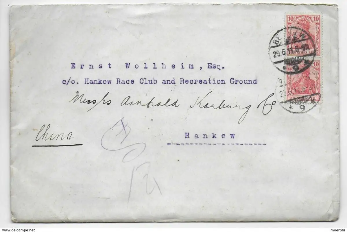 3x Incoming Mail Berlin/Hamburg/Karlsruhe nach China: Hankow, Tschangscha, 1911
