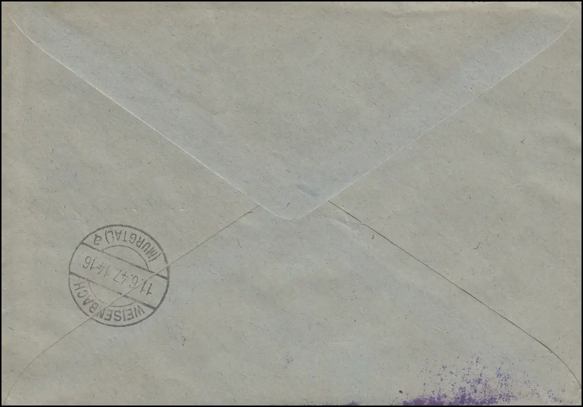 mit Ankunftsstempel WEISENBACH (MURGTAL) 11.6.47