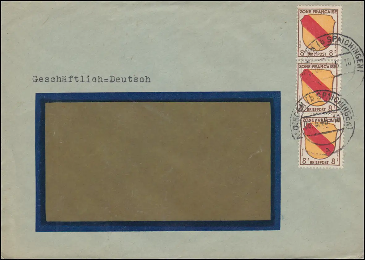 4 Freimarke Wappen 8 Pf als MeF auf Brief ALDINGEN bei SPAICHINGEN 8.5.1946