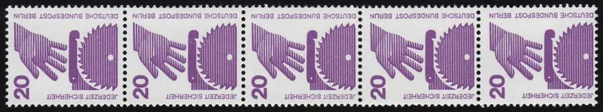404a Unfall 20 Pf 1000er-Rolle, 5er-Streifen + Nr. **