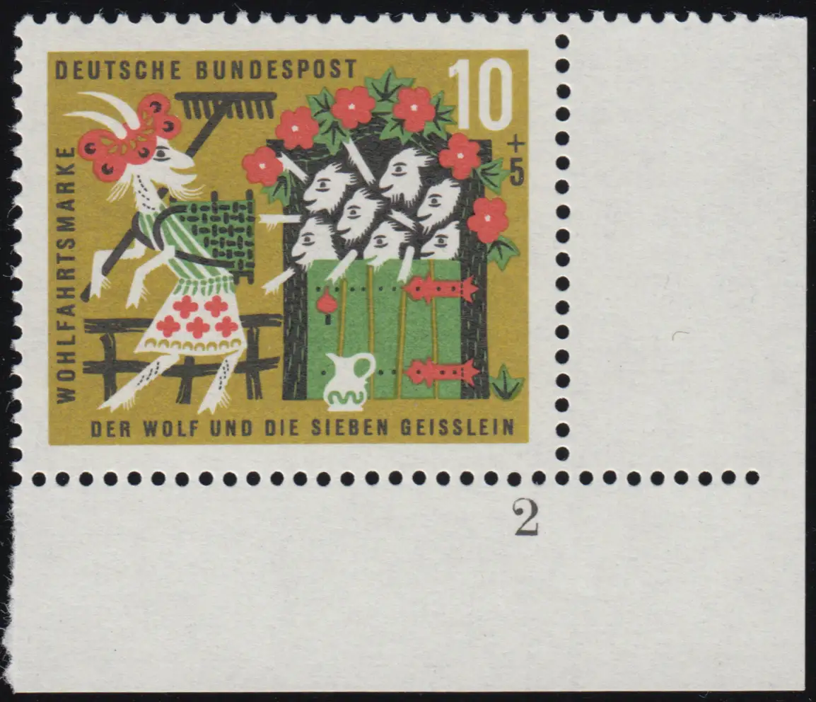 408 Wohlfahrt Grimm 10+5 Pf Sieben Geißlein ** FN2 Zähnung 8-0
