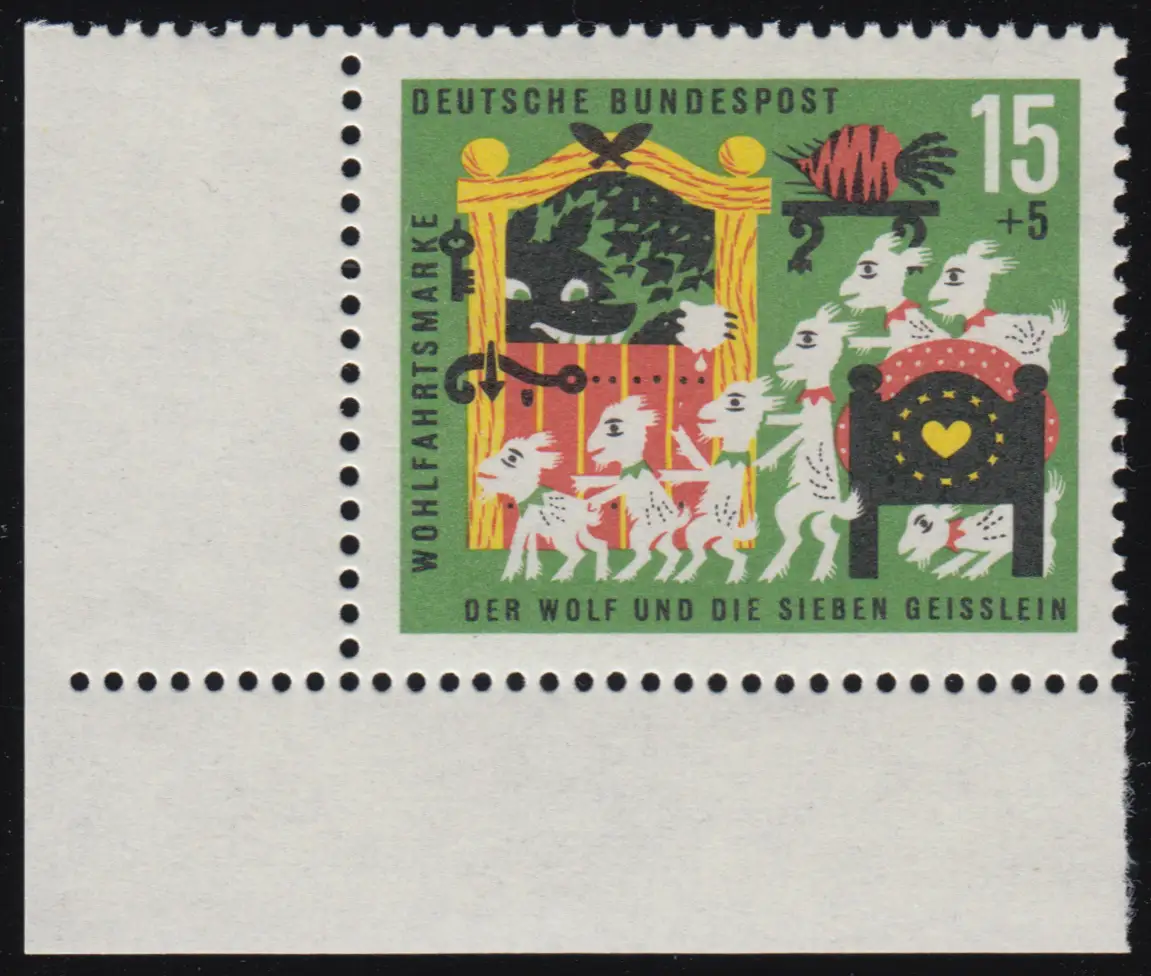 409 Wohlfahrt Grimm 15+5 Pf Sieben Geißlein ** Ecke u.l. Zähnung 8-0