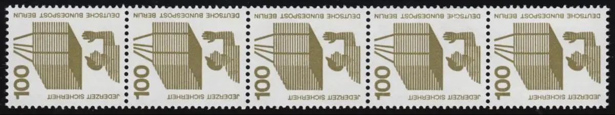 410a Unfall 100 Pf schwarze Nr., 5er-Streifen + Nr. **
