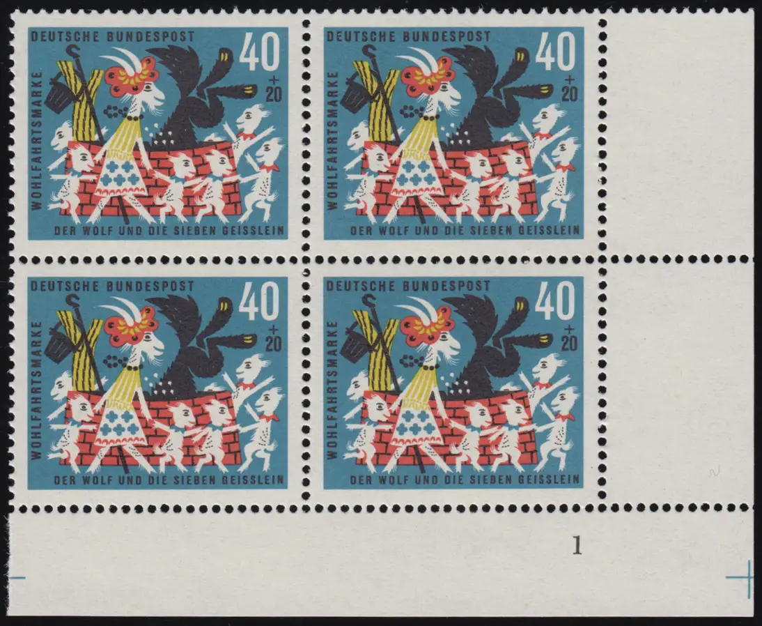 411 Wohlfahrt Grimm 40+20 Pf Sieben Geißlein ** Vbl FN1 Zähnung dg-0 FN1 +