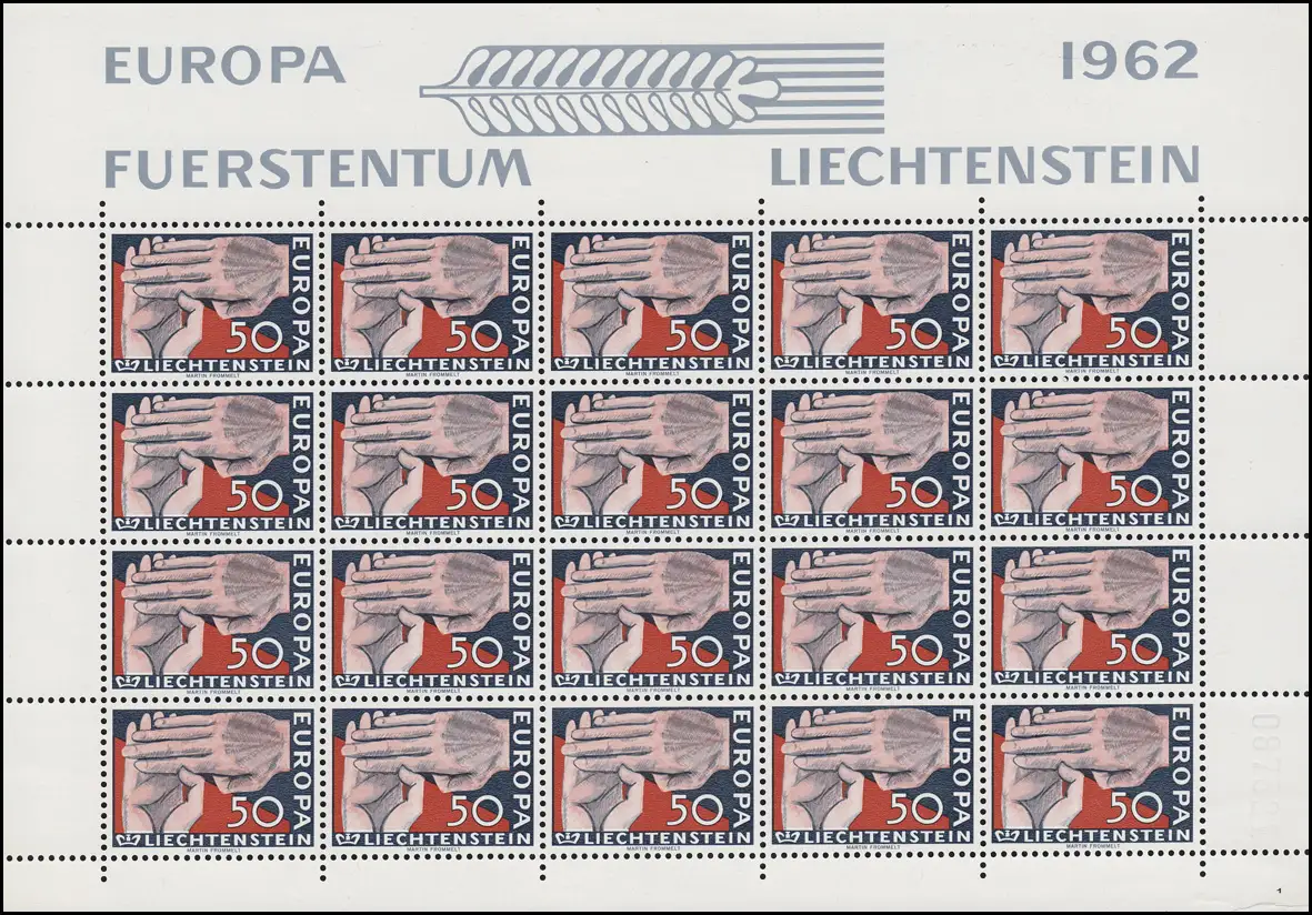 418 Europa / CEPT 1962, Kleinbogen mit Formnummer 1 (rechts unten), **