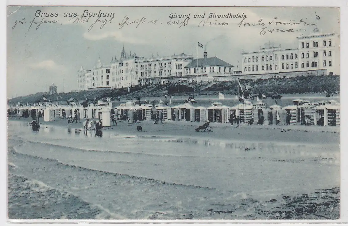 43304 Ak Gruß aus Borkum Strand und Strandhotels 1906