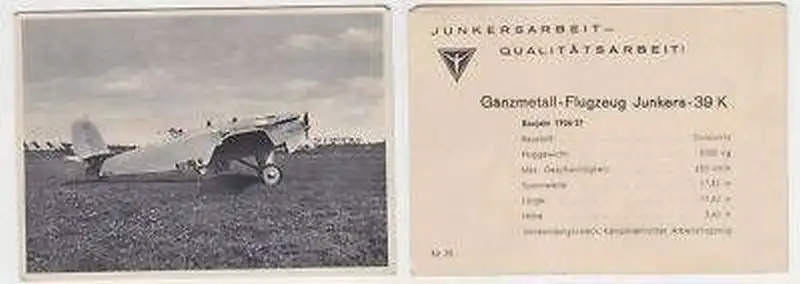 Ganzmetall Flugzeug Junkers 39 K, Baujahr 1926/27, keine Ansichtskarte, gute Erhaltung siehe Bild,