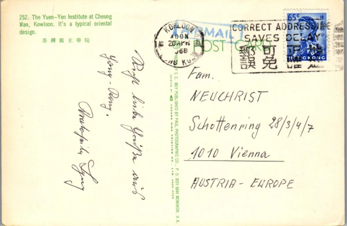 45240 - Hongkong - Kowloon , China , The Yuen , Yen Institute at Cheung Wan - gelaufen 1968