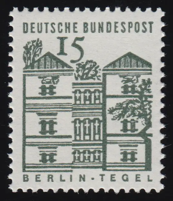 455b Bauwerke 15 Pf Tegel, schwarzolivgrün, postfrisch **