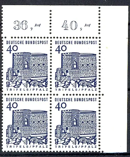 457 Bauwerke klein 40 Pf Eck-Vbl. or ** postfrisch