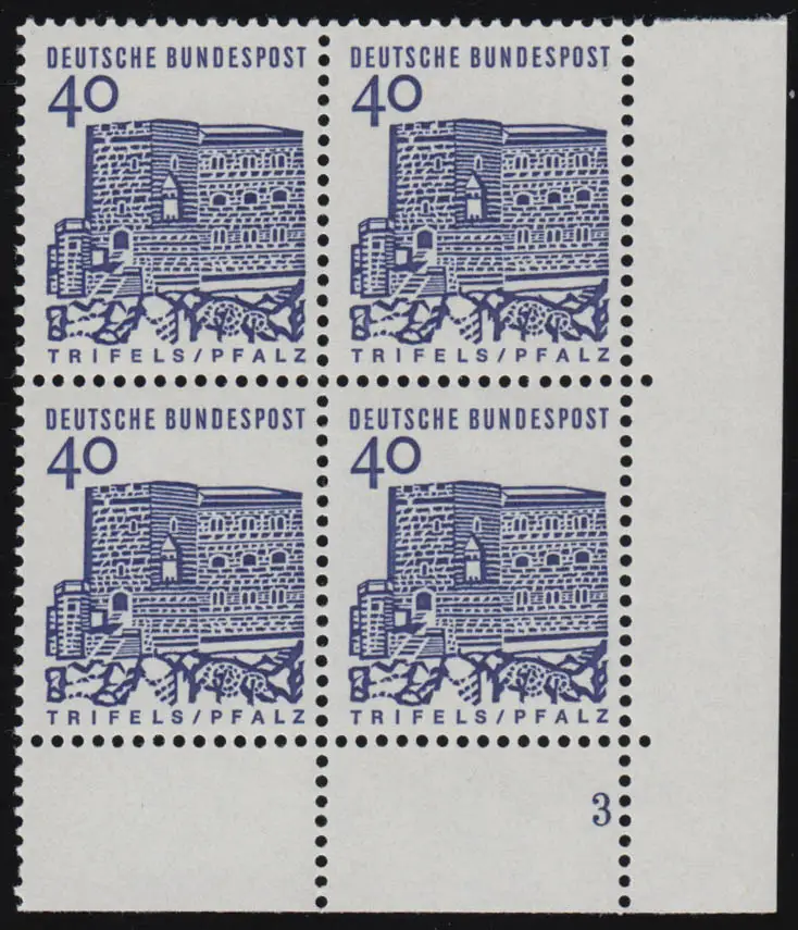 457 Bauwerke klein 40 Pf Eck-Vbl. ur FN3, ** postfrisch
