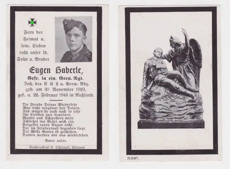 45827 Sterbebild WK2 Gefreiter Grenadier-Regiment gefallen in Russland 1944