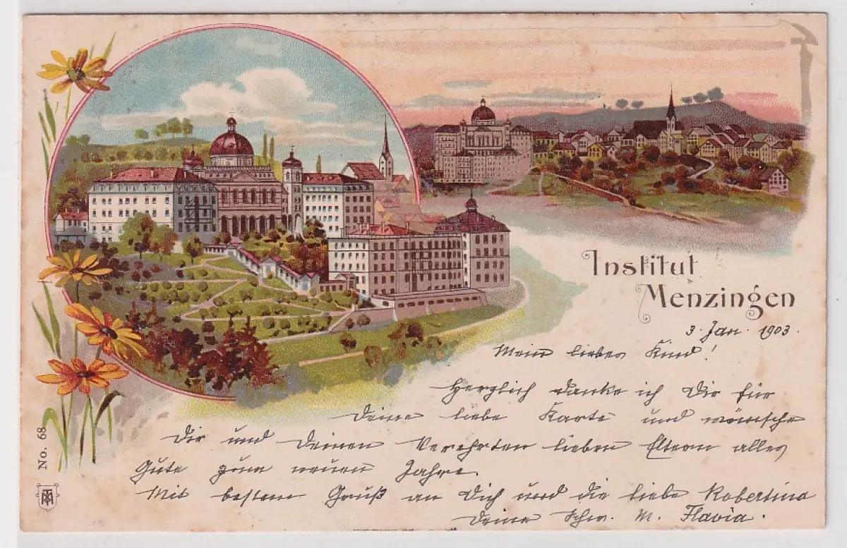 47763 Ak Lithografie Institut Menzingen Schweiz 1903