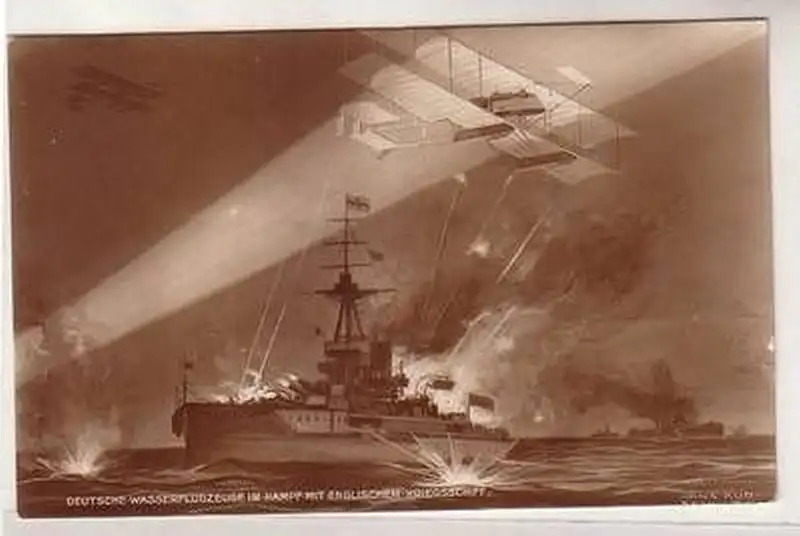 47986 Ak Deutsche Wasserflugzeuge im Kampf mit englischem Kriegsschiff 1915