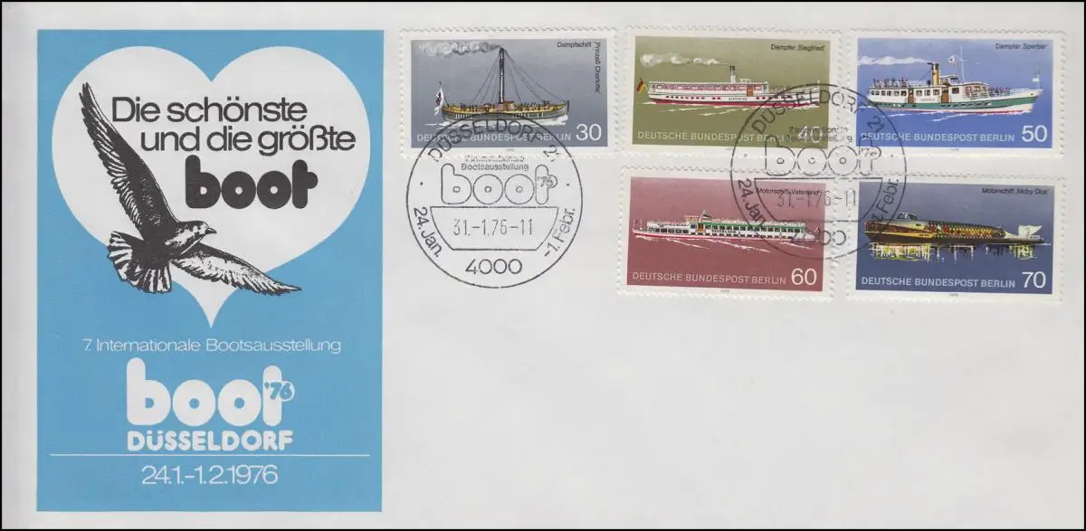 483-487 Personenschiffahrt - Satz auf Scmuck-Brief boot SSt. DÜSSELDORF 31.1.76