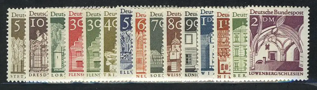 489-503 Bauwerke 15 Werte, komplett, Satz postfrisch **
