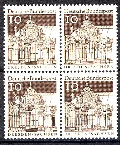 490 Bauwerke groß 10 Pf Viererblock ** postfrisch