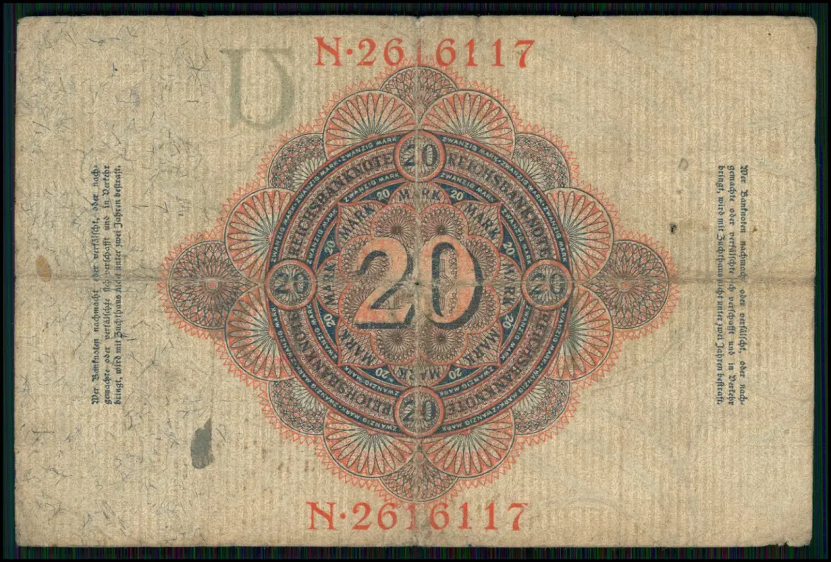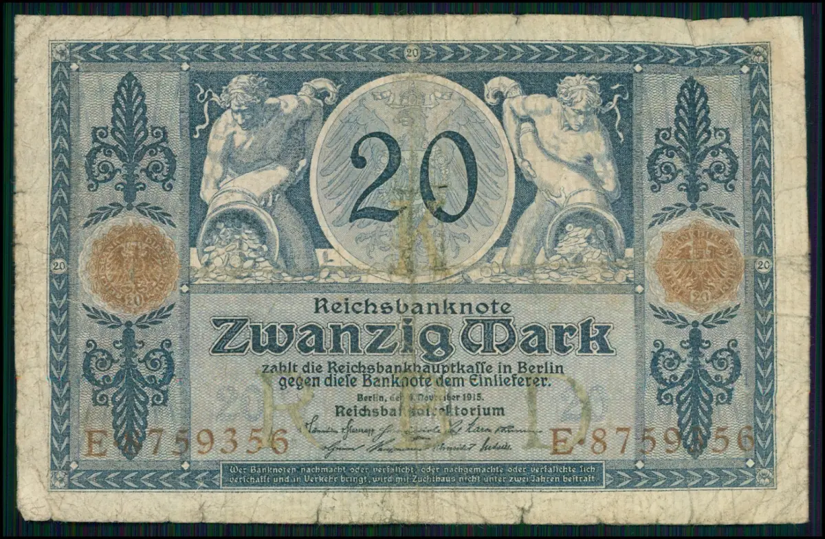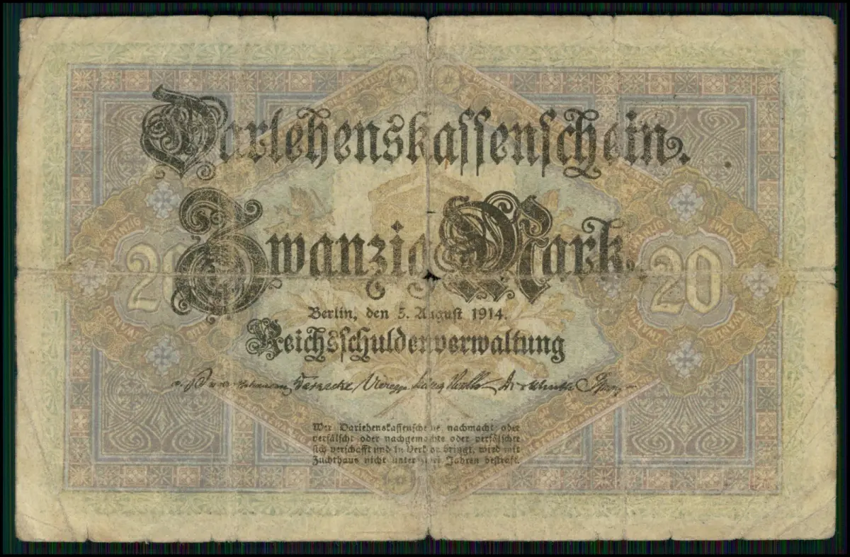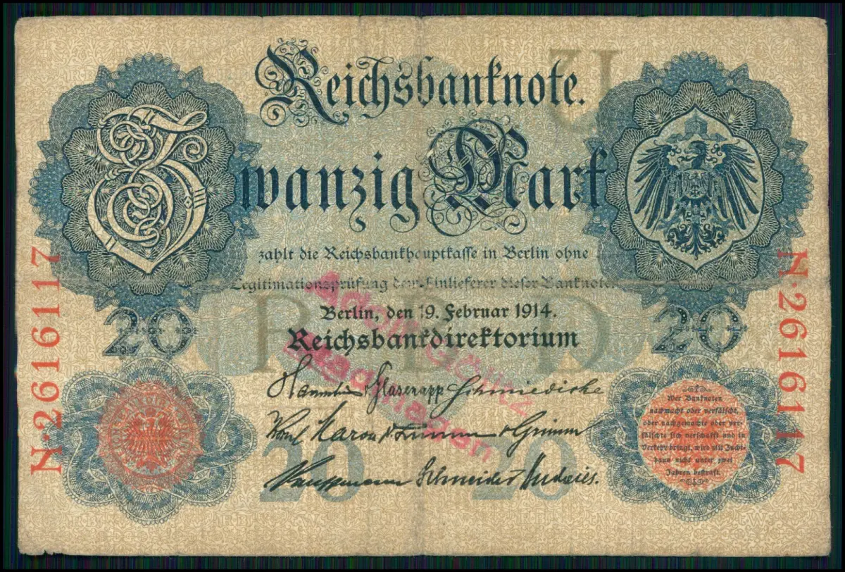 4x- 20 Mark Darlehnskassenschein 1914 + Reichsbanknoten Sammlung Deutsches Reich