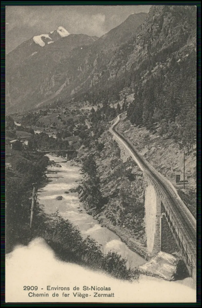 4x AK - Täsch St. Niklaus Kalpetran Eisenbahn - Dörfer Alpenfluss Zermatter Tal