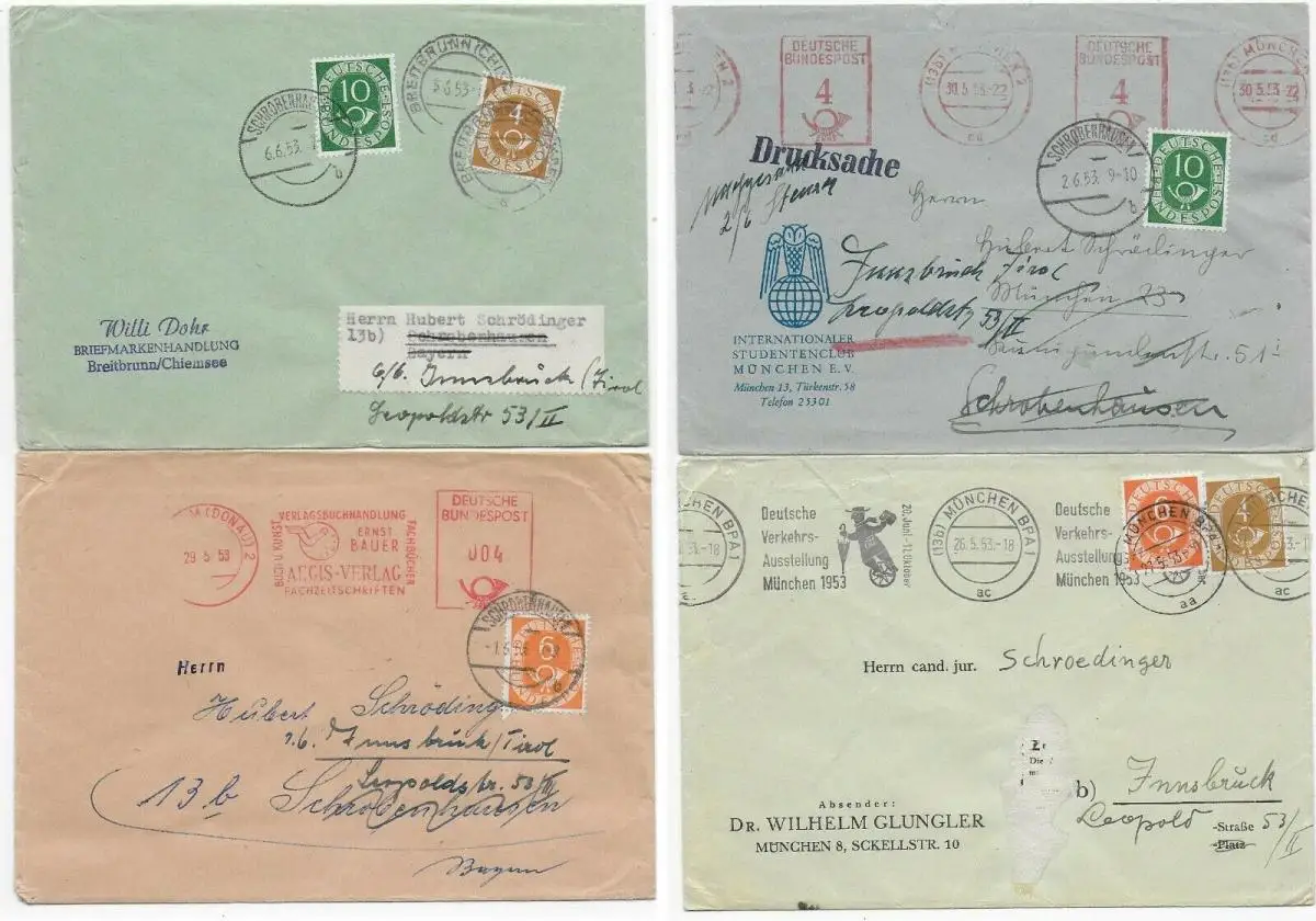 4x Briefe um 1953, Schrobenhausen, München, 3x davon Nachsendung
