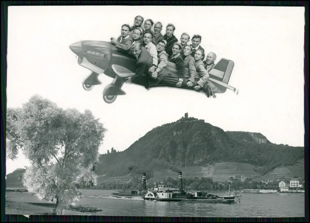 4x Foto - Königswinter Drachenfels Flugzeug Rundfahrt Rhein Schaufelraddampfer