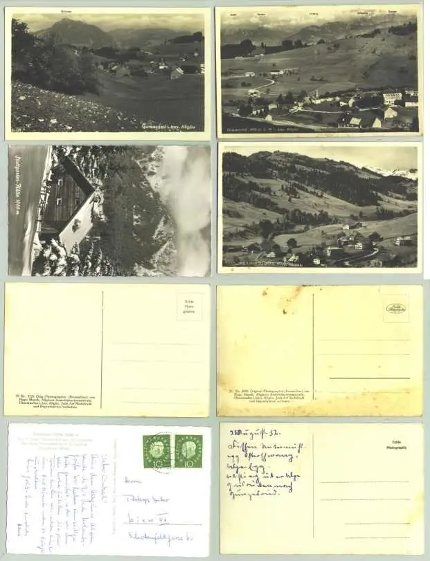 Artikelbeschreibung u. Zustand : Siehe Scan. Weitere Infos : 4 Ansichtskarten mit Motiven aus Gunzesried u. Umgebung. PLZ-Bereich pauschal 87544. Drei AK vermutlich um 1932 u. 1 postalisch gelaufen 1961