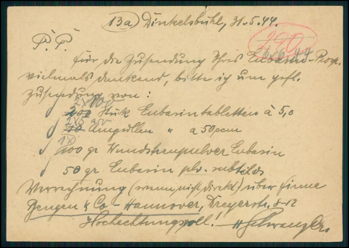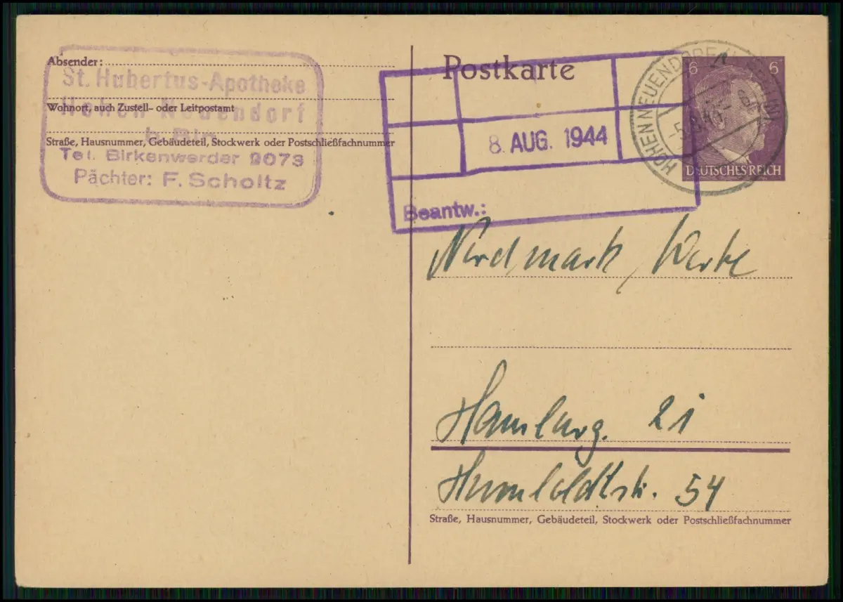 4x Postkarte Ganzsache Apotheke Stempel St. 1944 gelaufen viel Handschrift Info