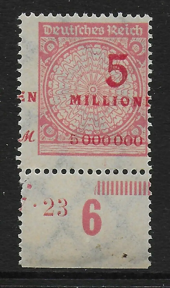 5 Millionen: MiNr. 317, postfrisch, ** Unterrand mit Druckverschiebung