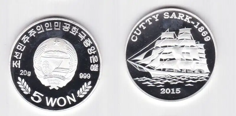 5 Won Silber M?nze Korea Cutty Sark 1869 PP 2015 (127135)